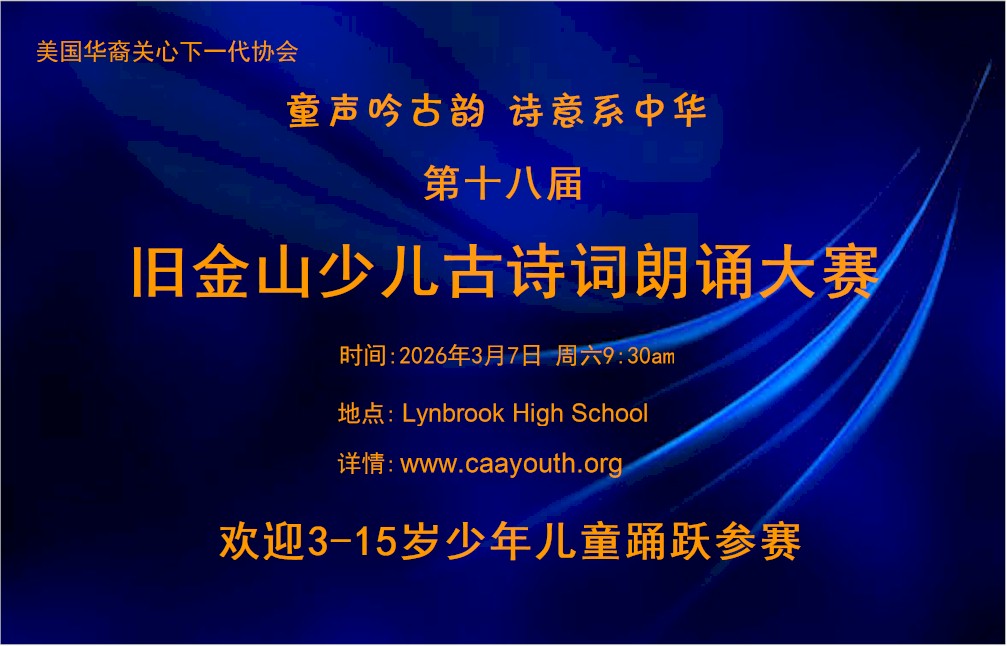 2026(第18届)旧金山少儿古诗词朗诵大赛开始报名 详情