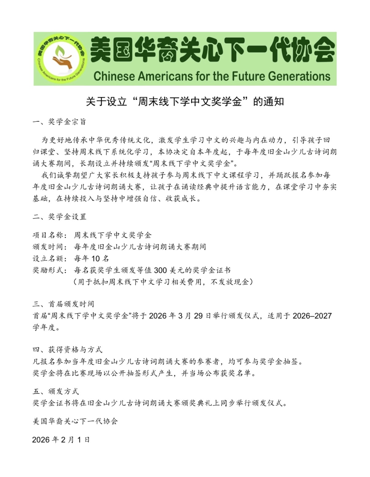 2026(第18届)旧金山少儿古诗词朗诵大赛开始报名 详情